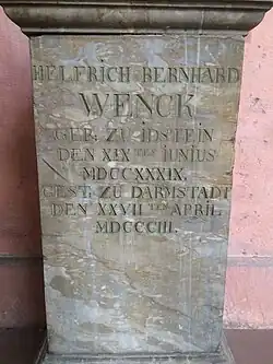 - ↑ „Todestag von Helfrich Bernhard Wenck“ in Bildungsland Hessen ( vom 2. März 2014 im Internet Archive)