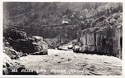 Im April 1955 wurde die Ortschaft Hells Gate gegründet und in Anlehnung an die Schlucht benannt, deren Bezeichnung seit 1947 offiziell registriert ist.[4] Im Juli 1971 eröffnete die Hells Gate Air Tram mit zwei Kabinen für je 25 Passagiere, die den Fluss in einer Länge von 341 Metern zwischen den Terminals und einem Höhenunterschied von 157 Metern überspannt.