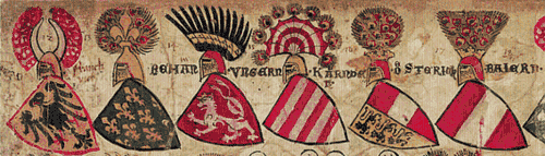 Zürcher Wappenrolle (14. Jh.): Wappen mit Helmzier als heraldisches Nachschlagewerk