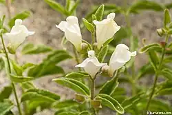 Habitus, Laubblätter und Blüten von Scutellaria mociniana