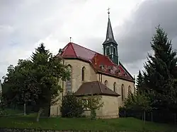 Die katholische Kirche St. Laurentius ist ein moderner Zweckbau der Nachkriegszeit und wurde oberhalb des Alten Schulhauses am Ortsrand errichtet.