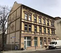 Das dreigeschossige verputzte Gebäude entstand in der Zeit um 1870/1880 im Stil der Neorenaissance. Im Erdgeschoss ist die achtachsige Fassade rustiziert. Es besteht eine horizontale Gliederung mittels profilierter Gesimse. Die Fensteröffnungen sind in den jeweils beiden äußeren Achsen zusammengefasst. Die Fensterverdachungen sind im zweiten Obergeschoss als Dreiecksgiebel und in den vier mittleren Achsen als Segmentbögen gestaltet. Das flache Satteldach kragt etwas vor und ruht auf Konsolsteinen.