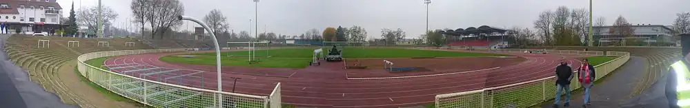 | Haupttribüne im Helmut-Schön-Sportpark (2012) | ||