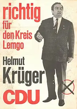 Der CDU gehörte Krüger seit 1959 an. Er war in zahlreichen Parteigremien tätig, so u. a. Vorsitzender des CDU-Kreisverbandes Lemgo.