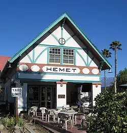 Die Eisenbahnstrecke nach Hemet wurde von 1888 bis 1987 von der Atchison, Topeka and Santa Fe Railway betrieben. Sie diente dem Transport von Orangen aus der Region. 1987 wurde sie aufgrund zu geringer Transportnachfrage fast komplett abgebaut. Ihre Reste werden heute zum kurzfristigen Lagern von Schienenfahrzeugen verwendet. Weitere Teile der verbliebenen Schienen sollen laut Plänen der Stadt entfernt werden, um Kreuzungen zwischen Straßen und der Eisenbahnstrecke ebener zu gestalten.