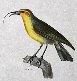 - Oahu-Amakihikleidervogel Hemignathus flavus. Verbreitung: Oahu (zeitweise in eigener Untergattung Chlorodrepanis, Synonyme: Chlorodrepanis flava, Viridonia chloris, Nectarinia flava, Hemignathus chloris)