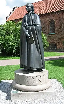 Statue Schartaus von Peter Linde vor dem Dom zu Lund (2003)