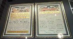 Nobel-Preis-Urkunde für Loewi und Dale vom 27. Oktober 1936 mit 24 Unterschriften