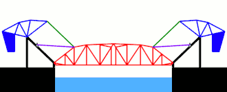 | Konstruktion | Stahl-Fachwerkträger-Klappbrücke System Strauss | |