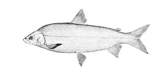 - ↑ Die englische Bezeichnung „whitefish“ steht für Felchen oder Maräne (Coregonus) und hat nichts mit den Weißfischen zu tun, die zu den Karpfenfischen gehören.