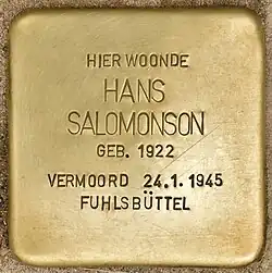 - ↑ Herman Salomonson (Amsterdam, 24 maart 1892 – Mauthausen, 7 oktober 1942). In: oorlogsbronnen.nl. Abgerufen am 7. Oktober 2022 (niederländisch).