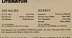 - ↑ Curt Goetz, Valérie Von Martens – Miniaturen / Die Rache – Herbst. In: Discogs.