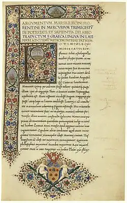 - ↑ Claudio Moreschini: Storia dell’ermetismo cristiano, Brescia 2000, S. 239–248; Maria Muccillo: Platonismo, ermetismo e «prisca theologia», Florenz 1996, S. 42–56.
