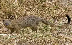 - der Kleine Mungo (Herpestes javanicus bzw. Urva javanica) ist eine relativ kleine Art, die in Südostasien verbreitet ist.