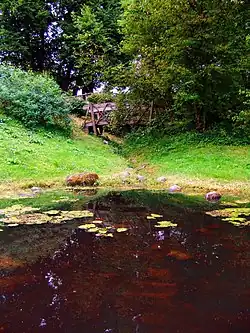 Der Frauengarten folgt weniger strengen architektonischen Linien als der östliche Garten. Hier gibt es einen Ententeich und einen Karpfenteich. Der Ententeich liegt in einer Achse mit dem Fenster des Frauenschlafzimmers. Diese Querachse zieht sich durch das ganze Haus bis zum Herrengarten, wo die Neptunstatue Wasser in ein kleines Bassin sprudelt.