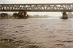 Das östliche Vorland wird mit einer Deckbrücke (Länge des Überbaus: 204,94 m[1]) mit Blechträgern und obliegender Fahrbahn überspannt. Diese weist in Längsrichtung ebenfalls mit sechs Feldern von jeweils 33,6 m Stützweite den Durchlaufträger als Bauwerkssystem auf.[3] Am 14. November 1979 wurde der zweigleisige Neubau in Betrieb genommen.