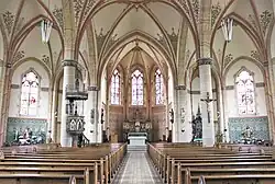 Aus der Erbauungszeit der Kirche stammt der Hochaltar im Stil eines gotischen Flügelaltars (Triptychon), die beiden Seitenaltäre und die Kanzel.[3]