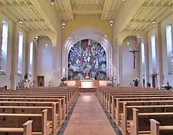 Von dem Glasmaler Franz Xaver Wilfried Braunmiller (München) stammen die Kirchenfenster, die 1933 geschaffen wurden und die 14 Kreuzwegstationen zeigen. 1971 wurden sie restauriert. Maler Jakob Schwarzkopf (Trier) schuf ein monumentales Altarbild, das um eine lebensgroße Christusfigur herum gruppiert Geschichten aus dem Alten und Neuen Testament erzählt. Auch das kleine Kirchenfenster, rechts neben dem Hauptportal hinter dem Grab des ersten Wustweiler Pastors, Hermann Schulz, ist ein Werk von Schwarzkopf. Von dem Bildhauer Boris Ryzek (Würzburg) stammen der Altar aus weißem Carrara-Marmor mit eingearbeiteten Opferlamm und Rebstöcken, der Ambo, der vier Medaillons mit Bibelthemen zeigt, Schmiedearbeiten hinter dem Altar, ein handgeschmiedetes Eisengeländer, sowie eine Sedalia in Bronze mit Symbolen, die in die Rückenlehne des Priestersitzes eingearbeitet sind[3].