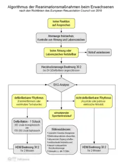 Diesem Artikel liegen die Reanimationsrichtlinien des European Resuscitation Council (ERC) von 2015 zugrunde (Aktuelle Version: März 2021[7]). Die praktische Umsetzung weicht in verschiedenen Ländern, medizinischen Institutionen und Hilfsorganisationen davon ab.
