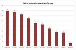 Seit 2012 fördern Anästhesisten in Deutschland, vertreten durch die DGAI, den Berufsverband Deutscher Anästhesisten e. V., den Deutschen Rat für Wiederbelebung und die Stiftung Deutsche Anästhesiologie, gestützt vom Bundesministerium für Gesundheit, mit ihrer Kampagne „Ein Leben retten. 100 Pro Reanimation“ die Steigerung der Reanimationsrate durch Laien. Dabei soll das Selbstvertrauen der Menschen in ihre eigenen Fähigkeiten als Ersthelfer gestärkt werden und die Ersthelferquote nachhaltig und langfristig gesteigert werden. Aus verschiedenen Gründen greifen zu wenige Personen bei einem Notfall helfend ein: Sie wissen nicht, was zu tun ist, oder wenden Gelerntes nicht an – meist aus Scheu, etwas falsch zu machen. Die Daten des Deutschen Reanimationsregisters zeigen, dass 2012 in Deutschland die Bereitschaft zur Reanimation durch medizinische Laien bei 19,8 Prozent lag. Dies ist ein im Vergleich zu anderen europäischen Ländern geringer Wert, wo die Erste-Hilfe-Bereitschaft (Ersthelferquote) deutlich höher liegt. Zum Beispiel weisen die Niederlande eine Quote von 70 Prozent auf, gefolgt von Schweden (68 %), Norwegen (63 %) und Tschechien (55 %). Mit der Kampagne konnte eine deutliche Verbesserung der Erste-Hilfe-Bereitschaft erreicht werden. So stieg die Bereitschaft zur Reanimation im Folgejahr auf fast 28 Prozent.[3] Im Jahr 2019 lag die Laien-Reanimationsquote in Deutschland bei 42 %.[59]