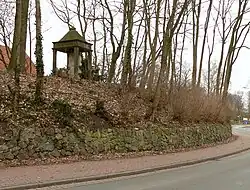 Am 16. April 1385 traf ein Steingeschoss Herzog Albrecht und zerschmetterte ihm ein Bein. Der Sage nach soll dies auf dem kleinen Hügel geschehen sein, auf dem der Kreuzstein aufgestellt wurde. Da sich die Erhebung etwa 500 Meter Luftlinie von der früheren Burgstelle entfernt befindet, ist dies wegen der geringeren Reichweite dieser Wurfmaschinen unwahrscheinlich. Der Erzählung nach betätigte die Tochter des Belagerten, Sophie von Mandelsloh, die Wurfmaschine bei diesem Abschuss. Der Herzog erlag am 28. Juni 1385 in Neustadt am Rübenberge den Folgen dieser Verletzung.