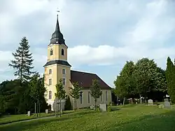 Erst im 19. Jh. entstand das neogotische Schloss der Herren von Schönberg, die im Ort 500 Jahre (1445–1945) ansässig waren, unter Einbeziehung von Teilen eines Bauernhofes, unweit des Rittergutes.[4] Zwischen 1899 und 1972 hatte der Ort Anschluss an die Schmalspurbahn Freital-Potschappel–Nossen.