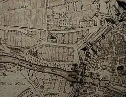 Innerhalb der Stadtmauer bewirtschafteten Patrizierfamilien und Ordensgemeinschaften im 14. bis 15. Jahrhundert Obst-, Gemüse- und Kräutergärten. Der Schwerpunkt der gärtnerischen Nutzung lag in der Lorenzer Altstadt, südlich der Pegnitz. Durch den mittelalterlichen Handel wuchs die Bevölkerung gegen Ende des 15. Jahrhunderts und die Grünflächen wurden zugunsten von Bauland aufgegeben. Der Rat der Reichsstadt Nürnberg musste auf Begehren der Gartenliebhaber Ersatzflächen bereitstellen.[6] So entwickelte sich ein grüner Kranz an Bürgergärten nach dem Ende des Ersten Markgrafenkrieges, 1449 um die heutige Altstadt von Nürnberg.[7] Im Bereich des sogenannten Burgfriedens, eines 800 bis 1300 Meter breiten Pufferstreifens entlang der Nürnberger Stadtmauer, wurde zu Verteidigungszwecken eine vorgezogene Linie aus Palisaden (Landwehr) errichtet. Im Jahr 1632 wurde die Verteidigungsanlage durch Erdbauwerke verstärkt. Diese Verteidigungszone wurde von Bauern landwirtschaftlich – als Acker, Wiese, Obst- und Gemüsegarten – genutzt und gehörte erst den burggräflichen und später den markgräflichen Lehnsherren.[5][8]