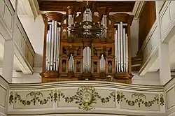 II/P | 23 | Neubau unter Verwendung von Teilen der Vorgängerorgel von Johann Heinrich Ruppert (1741), unter Mitarbeit des Bruders Georg Andreas und seiner Söhne Ernst Siegfried und Johann Michael II., 2011 restauriert durch Orgelbau Kutter → Orgel |