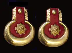 Bis 1832 waren die Schulterklappen rot, hellblaue Ärmelpatten, ab 1832 beides rot.