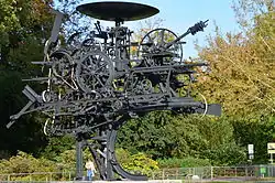 Tinguely entwarf die kinetische Grossplastik im Sinne der französischen Kunstrichtung des Nouveau Réalisme. Pierre Restany, Kunstkritiker und der theoretische Kopf des Nouveau Réalisme, forderte, nach dem Schock des Krieges «die Welt so zu akzeptieren, wie sie nun einmal war». Tinguely baute kleine Zeichenmaschinen, mit denen er die abstrakte Kunst verhöhnte, und Riesenmaschinen aus Schrott.[3]