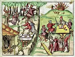 Mit den Sittenmandaten wurde versucht, das tägliche Leben der Menschen zu regeln. Verboten wurden: Fluchen, Schwören, Müssiggang, liederlicher Lebenswandel, aufwendige Feste, Tanzen, Alkoholkonsum, teure Kleidung, Luxus, Glücksspiele, Unzucht und Ehebruch. Eingeführt wurde die Pflicht zum sonntäglichen Messe- und Predigtbesuch.[9] Sittengerichte, in Bern «Chorgericht/consistoire» genannt, wurden 1528 eingeführt und erst 1798 endgültig abgeschafft. Bestraft wurde mit Zurechtweisungen, Ausschluss vom Abendmahl, Bussen, Gefängnis und Verbannung. Die Todesstrafe wurde verhängt.[10][11] Auch Johannes Calvin befürwortete die Verfolgung und Hinrichtung von Hexen. Unter Berufung auf die Bibelstelle Buch Exodus Kapitel 22, Vers 17[12] erklärte Calvin, Gott selbst habe die Todesstrafe für Hexen festgesetzt.[13]