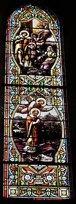 Als das linke Ufer des Lot von den Sarazenen überfallen wurde, begab er sich trotzdem gewohnheitsgemäß von Lévinhac, wo seine Mutter wohnte, zur Chapelle de Perse, um dort weiterhin die heilige Messe zu feiern. Dabei überquerte er den Lot auf seinem auf dem Wasser ausgebreiteten Mantel, den er wie ein Boot benutzte, besonders dann, wenn das reißende Wasser des Flusses einen anderen Übergang unmöglich machte. Ein Kreuz, das den Namen und ein Abbild des Heiligen trägt, bezeichnet den Ort, wo er das Ufer betrat.[1]