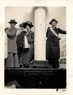 - ↑ Suffragettes campaigning during the General Election. Museum of London, 1910, abgerufen am 12. Dezember 2024.