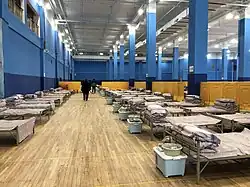 Im Zuge der COVID-19-Pandemie kam es im Jahr 2020 weltweit vermehrt zur Einrichtung von Hilfskrankenhäusern, da das normale Gesundheitssystem in vielen Staaten durch die große Zahl an Erkrankten überlastet worden war. So entstanden in der besonders betroffenen chinesischen Stadt Wuhan innerhalb weniger Tage das Huoshenshan-Krankenhaus und das Leishenshan-Krankenhaus. Auch nahe Moskau entstand ein komplett neues Krankenhaus für COVID-19-Patienten.[11] In weiteren Ländern wie Brasilien, Deutschland, dem Iran, Österreich, Spanien und den USA wurden beispielsweise Einkaufszentren, Sport- und Messehallen oder Stadien als Notkrankenhäuser genutzt.[12] In Bayern sollten als Reaktion auf die Krise Hilfskrankenhäuser in den 26 Rettungsdienstbezirken eingerichtet werden.[13][14][15][16][17][18] Ein Hilfskrankenhaus mit 1350 Betten im Messezentrum IFEMA in Madrid bestand vom 21. März bis zum 1. Mai 2020, in diesem Zeitraum wurden über 4000 Patienten behandelt.[19]