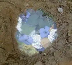 Das Spiel besteht darin, eine Art Collage zu erstellen. Dazu wird auf dem Boden, in der Regel an einem abgelegenen Ort, z. B. den Ecken des Hofes oder Schulhofes, ein kleiner Hohlraum geschaffen, in dem das Kind mit verschiedenen kleinen Gegenständen ein visuelles Thema gestaltet. Dann wird es mit einem Stück Glas abgedeckt und im Boden eingefasst. Die verwendeten Elemente sind in der Regel kleine Blüten, Blätter, Perlen, Stücke von farbigen Folien oder Verpackungen[1]. Der Betrachter, der als einzige Person exklusiv eingeweiht wird um das Versteck zu sehen, musste, um den Teil der Oberfläche der Erde zu säubern, manchmal seinen eigenen Speichel verwenden.