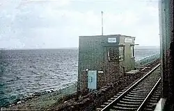Im Jahre 1955 wurde der Bahnhof Hindenburgdamm mit einem mechanischen Einheitsstellwerk eröffnet, um die Zugfolge zwischen dem Festland und der Insel Sylt erhöhen zu können; allerdings war dieser als reiner Betriebsbahnhof, also ohne Bahnsteige, ausgeführt.[11] 1970 erreichte das zweite Gleis den Kreuzungsbahnhof, zwei Jahre später ging es bis Morsum weiter. Die Betriebsstelle wurde zur Blockstelle zurückgebaut. Wegen der abgelegenen Lage wurde das Personal mit planmäßigen Betriebshalten von Autozügen gebracht und abgeholt. Seit 1996 wird sie als selbsttätiger Streckenblock ohne Personal betrieben.