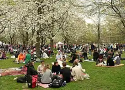 Das Kulturbüro der Stadt Hannover übernahm im Jahr 2001 die japanische Tradition, während der Kirschblüte das Kirschblütenfest im Hiroshima-Hain zu begehen.[4] Unter blühenden Kirschbäumen bieten Vereine und Initiativen ein vielfältiges Kulturprogramm mit japanischer Kampfkunst, Kalligraphie, Origami, Taiko-Vorführungen, Musik, kulinarische japanischen Spezialitäten, Manga-Präsentationen und japanischen Teezeremonien an.