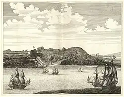 | Queen Anne’s Point | Akong | Zuerst existierte hier ein kleines holländisches Fort, das vor 1662 aufgegeben wurde. Anfang des 18. Jahrhunderts wurde dann ein kleines englisches Fort errichtet, das noch 1731 besetzt war.[1] | |