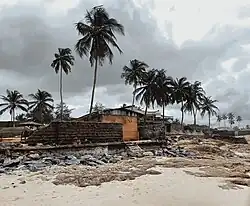 Fort Fredensborg | Ningo (Groß-Ningo) bei Keta | 1734 dänisch, Beginn eines Fortbaus (1741 vollendet); 1850 schon halb verfallen britisch; heute nur noch Ruinen direkt am zurückweichenden Strand. |