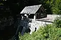 Diese und die folgenden Klausen dienten dazu, Wasser anzustauen und es dann freizugeben, um in den Wäldern der Umgebung geschlagenes Bauholz zum Abstützen der Bergwerksstollen per Holztrift nach Idrija zu schaffen |