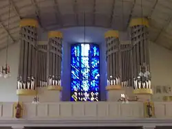 Die Orgel aus dem Jahr 1959 stammte von der Firma Hugo Mayer Orgelbau. Am 22. März 1959 wurde sie feierlich eingeweiht. Die Orgel wurde nach Polen an die Diözese Oppeln verschenkt und im Jahr 2001 durch die heutige Link-Orgel ersetzt. Die Windladen waren Schleifladen, die Spieltraktur und die Registertraktur waren elektrisch. Die Orgel verfügte über 45 Register mit 3046 Pfeifen (Manuale: 3 C-g3, Pedal: 1 C-f1).
