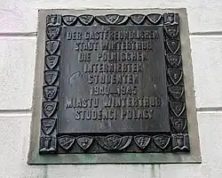 Einige polnische Soldaten blieben bis Sommer 1946 in der Schweiz um ihre Studien abzuschliessen. Ende Juni 1946 übergaben sie der Stadt Winterthur eine Gedenktafel für das Hochschullager Winterthur. Die Tafel wurde vom polnischen Künstler Pietrowksi Maciej gestaltet und Ende Juni 1946. Auf der dunklen Bronzetafel beim Gewerbemuseum heisst es: „Der gastfreundlichen Stadt Winterthur. Die internierten polnischen Studenten. Miastu Winterthur. Studenci Polaci.“