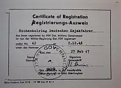 Unter der britischen Militärregierung wurden Fahrverbote für Wasserfahrzeuge verfügt, der alliierte Kontrollrat sprach ein Betätigungsverbot für viele Vereine aus (Kontrollratsgesetz Nr. 8) und löste diese zum 1. Januar 1946 auf. Nachdem jedoch mit dem Schifffahrtsbefehl Nr. 2[10] und der Bekanntmachung zur Bildung von Segelsportvereinen[11] im November 1946 wieder Möglichkeiten zur Ausübung von Wassersport geschaffen wurden, bemühten sich elf Kieler Mitglieder des HDK um eine Neuzulassung. Dies gelang durch Kooperation mit dem Kieler Yacht-Club (KYC), so dass ab dem 2. Dezember 1946 der Vereinsbetrieb – zumindest eingeschränkt – wieder aufgenommen werden konnte[4][9]. Es durfte zunächst nur die Kieler Förde bis zur Grenzlinie zwischen Laboe und Bülk befahren werden[12]).
