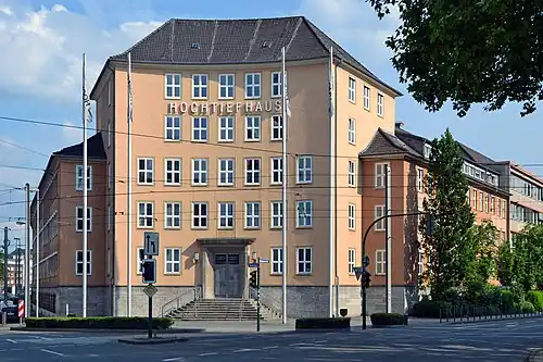 - ↑ a b Jennifer Schumacher: Essener Denkmalamt prüft das Hochtiefhaus am Opernplatz. In: Westdeutsche Allgemeine Zeitung. Funke Mediengruppe, 4. Februar 2016, abgerufen am 29. November 2019.