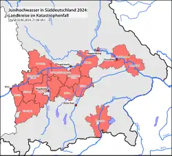- ↑ a b Jahrhunderthochwasser in Süddeutschland – eine Nachlese. In: Deutscher Wetterdienst, 4. Juni 2024. Abgerufen am 4. Juni 2024.