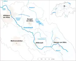 - ↑ Anzeiger Bezirk Affoltern: «Zum Glück gibt es das Jonenbach-Rückhaltebecken!» Abgerufen am 8. Mai 2021.