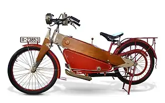 Neben den landwirtschaftlichen Maschinen wurde ab 1924 ein Motorrad unter dem Bezeichnung MFB hergestellt.[7] Die Konstruktion stammte von der Motorfahrzeugbau (abgekürzt: MFB) GmbH aus Hamburg. Sie hatte einen Kastenrahmen aus Eschenholz, das in vernickelte Stahltaschen gepresst wurde.[2] Auch die durch eine senkrechte Blattfeder abgefederte Gabel war aus Eschenholz gefertigt.[5]