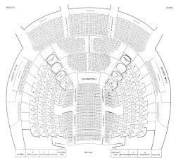 Der Zuschauerraum bietet etwa 1.340 Zuschauern Platz (1.175 Sitzplätze) und ist damit einer der größten unter Europas Schauspielhäusern. Das Bühnen-Portal ist 12 m breit und am höchsten Punkt 9 m hoch. Die Schnürböden und Beleuchtungsbrücken befinden sich in 28 m Höhe. Die Bühnenfläche beträgt rund 780 m², bei einer Breite von 31 Metern und einer Tiefe von etwa 25 Metern – sie kann allerdings durch eine Erweiterung im Cercle-Bereich erweitert werden.[37] Die Bühne selbst befindet sich im 1. Stock des Theatergebäudes, für die Schauspieler gibt es auf beiden Seiten der Bühne je zwei Eingänge. Im Hinterbühnenbereich existiert ein großer Aufzug, der 20 Meter breit und 1,5 Meter tief ist und somit zur Beförderung von Dekorationen geeignet ist, die zwar sehr breit und bis zu 3,5 Meter hoch, aber nur knapp 1,25 Meter tief sein dürfen. Größere Kulissenteile können nur gekippt transportiert werden.