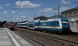 Zwischen 2010 und 2013 wurde der Abschnitt der Sachsen-Franken-Magistrale von Bahnhof Reichenbach (Vogtl) ob Bf bis Hof elektrifiziert. Der offizielle Spatenstich erfolgte am 30. September 2010 im Hofer Hauptbahnhof[6], Anfang 2012 wurden die ersten Fahrleitungsmasten im Hofer Hauptbahnhof aufgestellt. Seit der 48. Kalenderwoche des Jahres 2013 ist der Bahnhof Hof und die anschließende Bahnstrecke in Richtung Plauen vollständig elektrifiziert. In Hof wurde ein Umrichterwerk zur Erzeugung des Bahnstroms errichtet. Zum Fahrplanwechsel am 15. Dezember 2013 übernahmen Elektrolokomotiven und Doppelstockwagen einen Teil der Leistungen zwischen Hof und Dresden, alle anderen Züge wurden weiterhin mit Dieseltriebwagen gefahren.[7] Seit Dezember 2014 wurden die Dieseltriebwagen der Baureihe 612 durch die Baureihe 643 weitgehend ersetzt. Damit einher ging der Verlust einiger Unterwegshalte von und nach Dresden aufgrund fehlender Neigetechniktriebwagen.