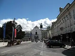 Die Hofburg in Innsbruck ist eine von den Habsburgern errichtete und bewohnte Residenz. Ursprünglich eine Burganlage aus dem Spätmittelalter, wurde sie in der Frühen Neuzeit zu einem Schloss ausgebaut und Sitz der Tiroler Landesfürsten sowie Wohnsitz verschiedener Angehöriger der Dynastie bis zur Gründung der Republik im Jahr 1918. Der heutige Zustand beruht auf den Ausbauten unter Kaiserin Maria Theresia durch den Hofbaumeister Johann Martin Gumpp den Jüngeren im Rokokostil und ist teilweise zu besichtigen. Die Innsbrucker Hofburg ist neben der Hofburg in Wien und dem Schloß Schönbrunn eine der drei wichtigsten historischen Herrschaftsarchitekturen Österreichs und einer der bedeutendsten Kulturbauten des Landes.[1]